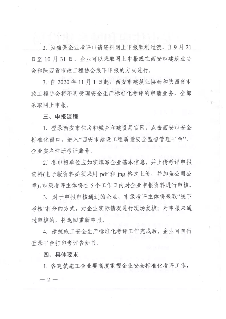 “ 9月15日,西安市住房和城鄉(xiāng)建設(shè)局發(fā)布關(guān)于西安市建筑施工企業(yè)安全生產(chǎn)標(biāo)準(zhǔn)化考評(píng)網(wǎng)上申報(bào)的通知。”